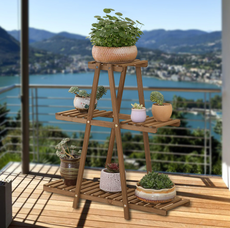 Πολυεπίπεδη βάση φυτών για εσωτερικό και εξωτερικό χώρο που σχηματίζει A-Frame. Ο σχεδιασμός A-Frame το κάνει να στέκεται σταθερό και να είναι ανθεκτικό. Διαθέτει τρία ράφια με αρκετό πλάτος ώστε να τοποθετείτε κασπό ή γλάστρες και άλλα διακοσμητικά.