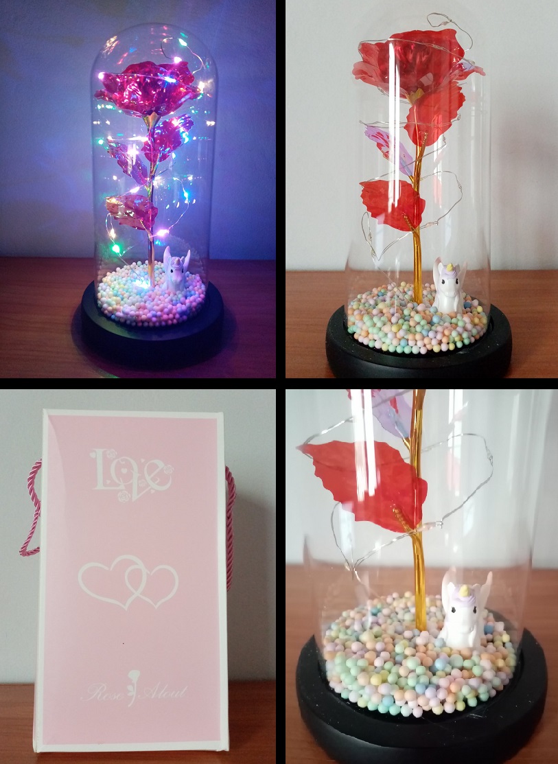 Το τριαντάφυλλο, ο μονόκερως και τα φωτάκια περιέχονται στην συσκευασία!
